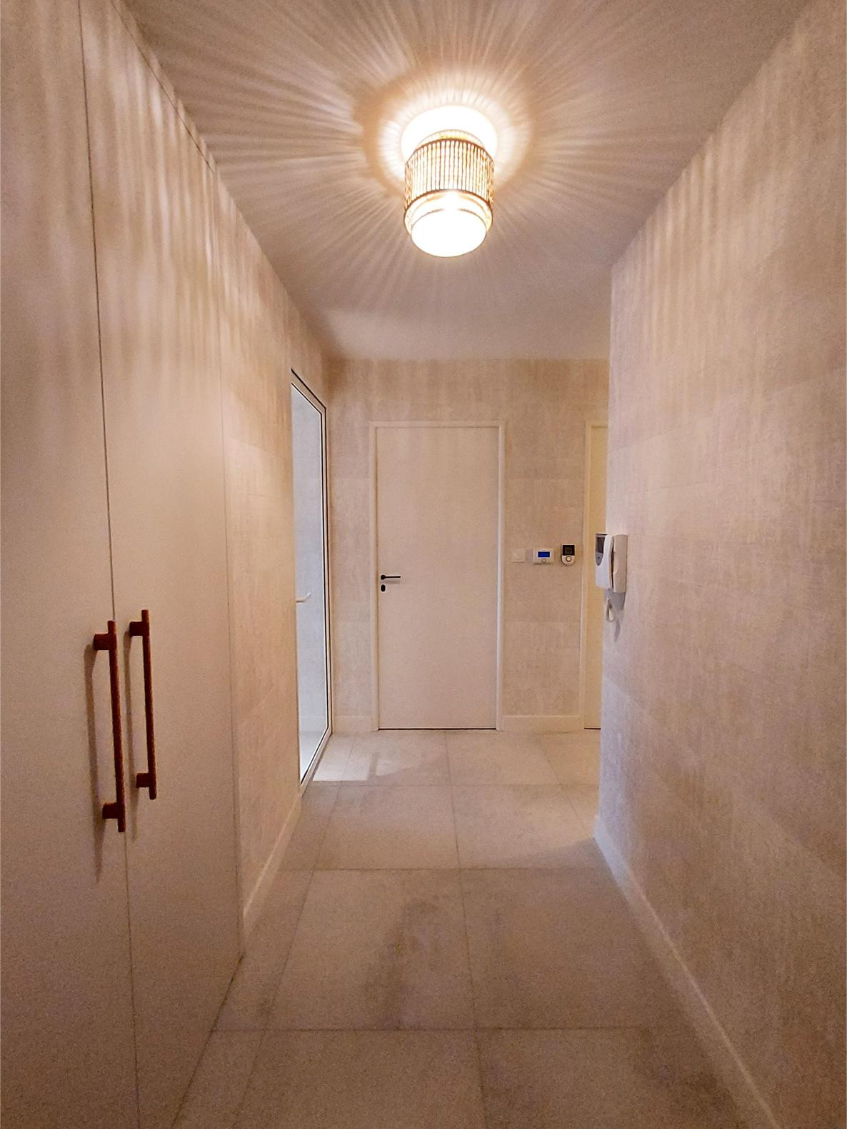 Une dominante claire et des revêtements muraux apportant matière et évasion : l’appartement allie esthétique et confort, minimalisme et chaleur, le tout dans une esthétique sobre pour exalter son pouvoir d’émotion.